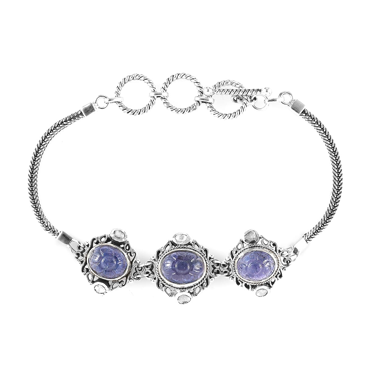 Artisan Crafted Tanzanite Carved and Polki Diamond Bracelet in Sterling Silver (7.25 In) 12.40 ctw