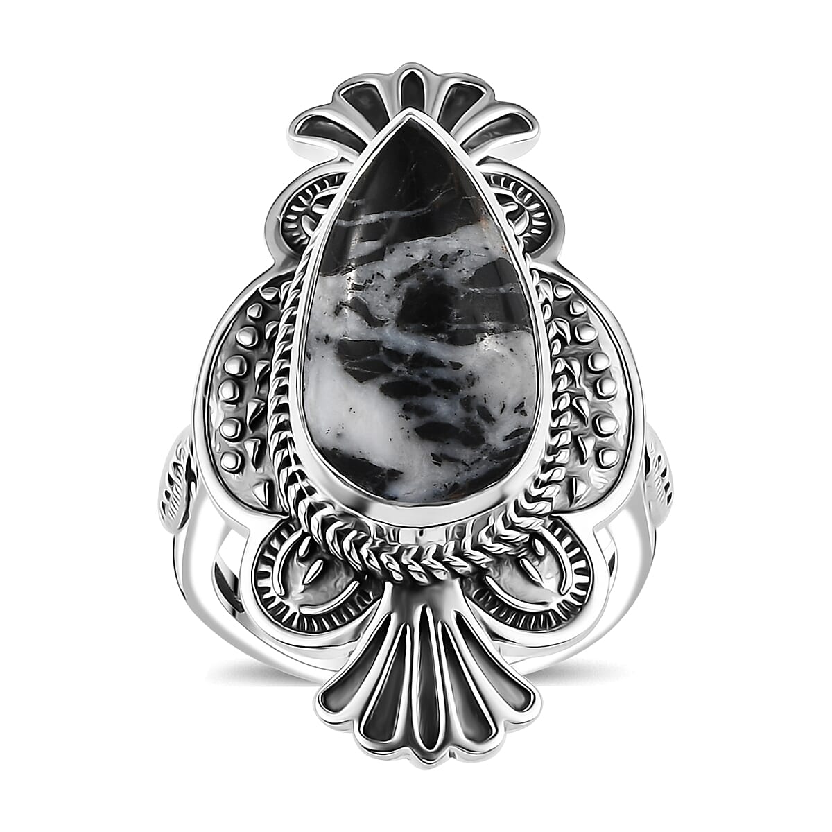 Artisan Crafted White Buffalo 8.25 ctw Ring in Black Oxidized Sterling Silver (Size 9.0)
