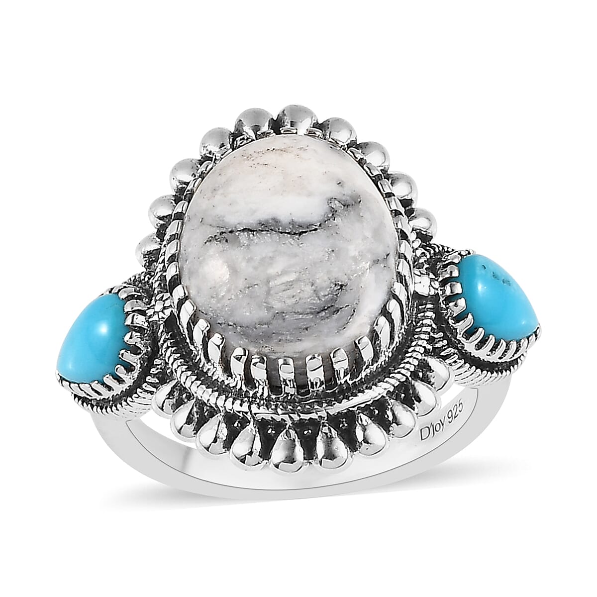 Artisan Crafted White Buffalo and Sleeping Beauty Turquoise Ring in Sterling Silver 5.85 ctw