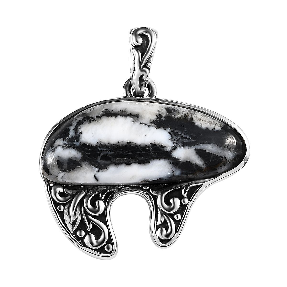 Artisan Crafted White Buffalo Bear Pendant in Sterling Silver 17.85 ctw