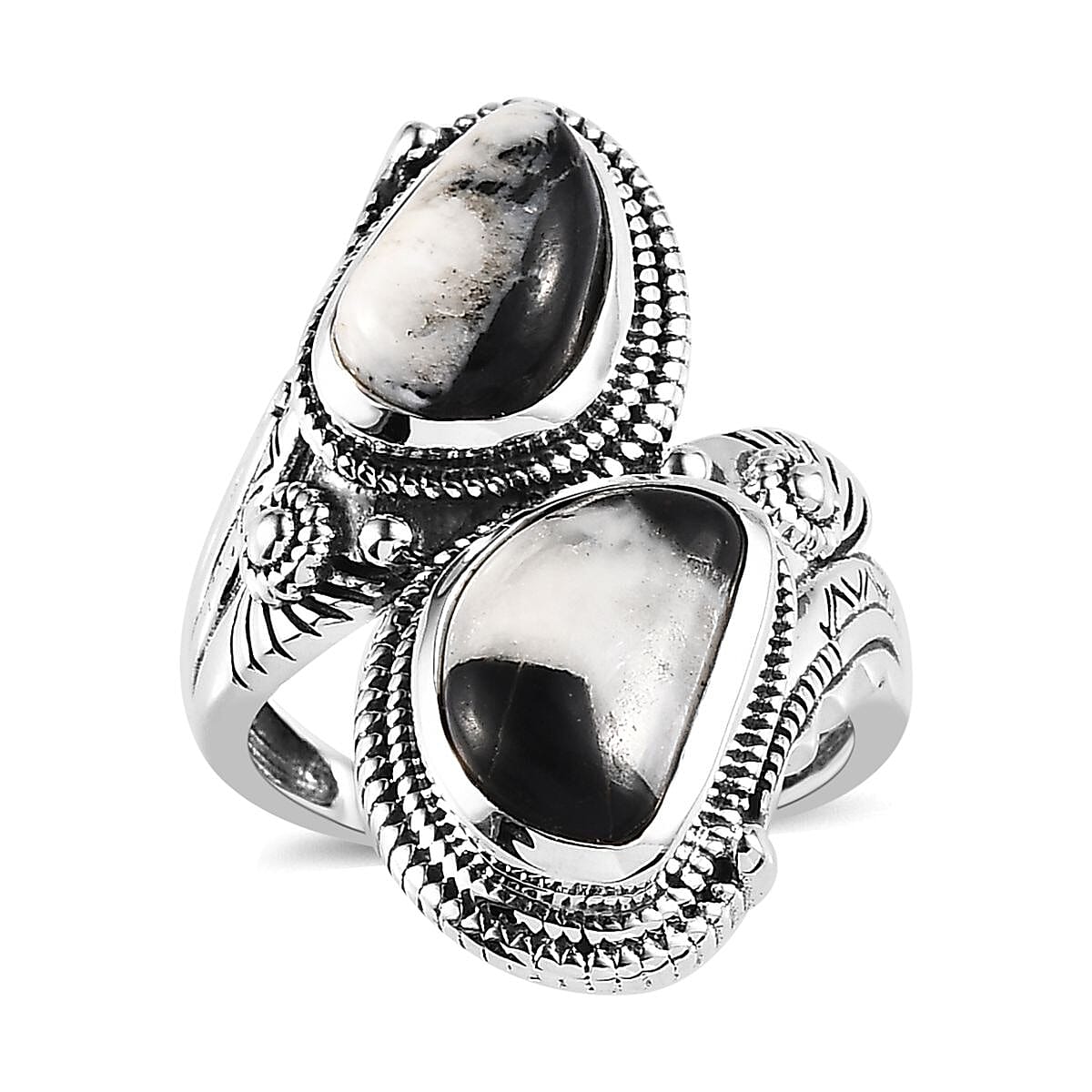 Artisan Crafted White Buffalo Bypass Ring in Sterling Silver (Size 8.0) 5.25 ctw