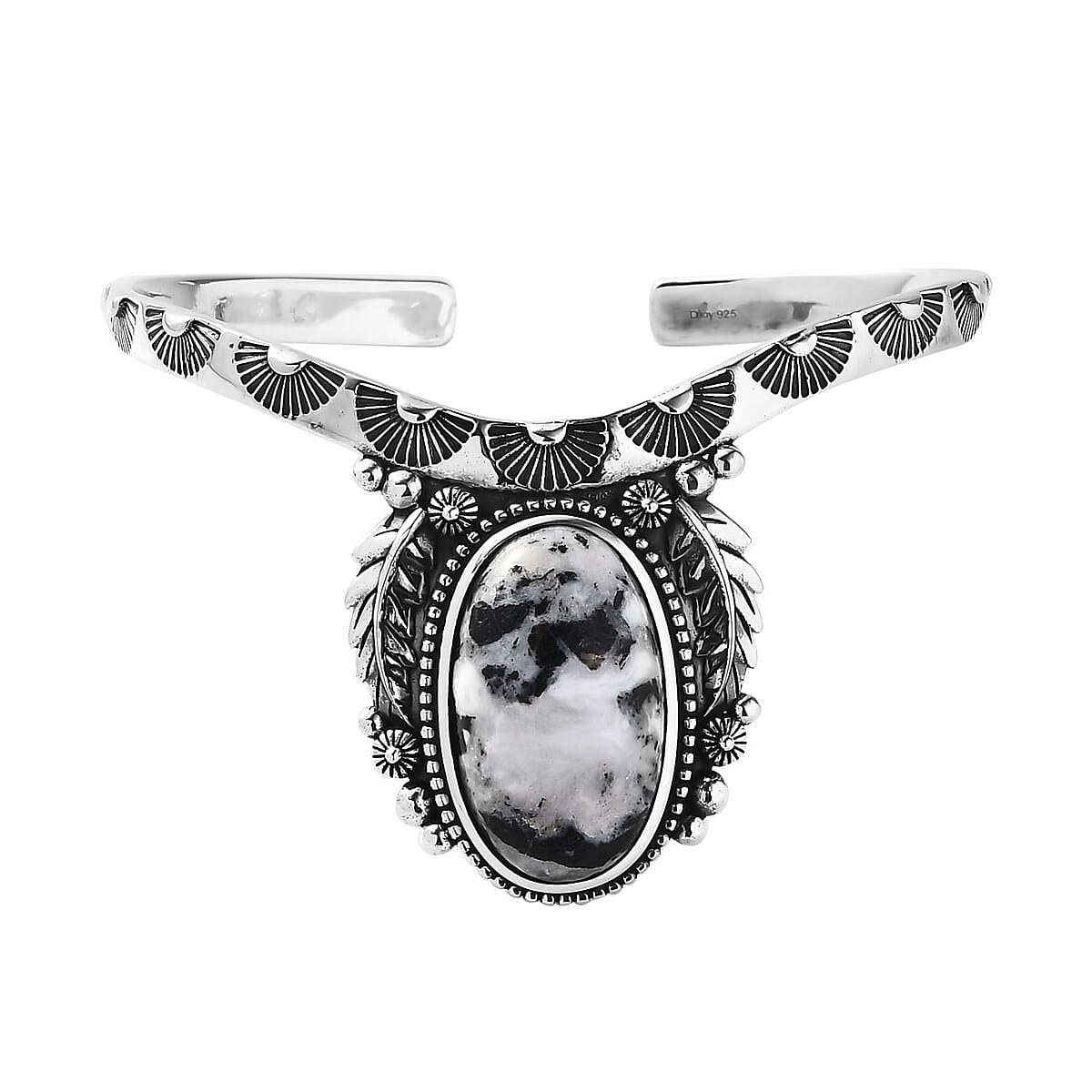 Artisan Crafted White Buffalo Cuff Bracelet in Sterling Silver BannerArtisan Crafted White Buffalo Cuff Bracelet in Sterling Silver Banner