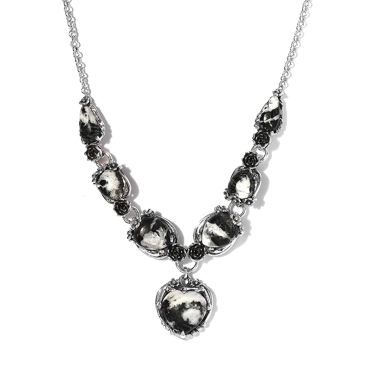 Artisan Crafted White Buffalo Heart Necklace 18 Inches in Sterling Silver 26.90 ctw