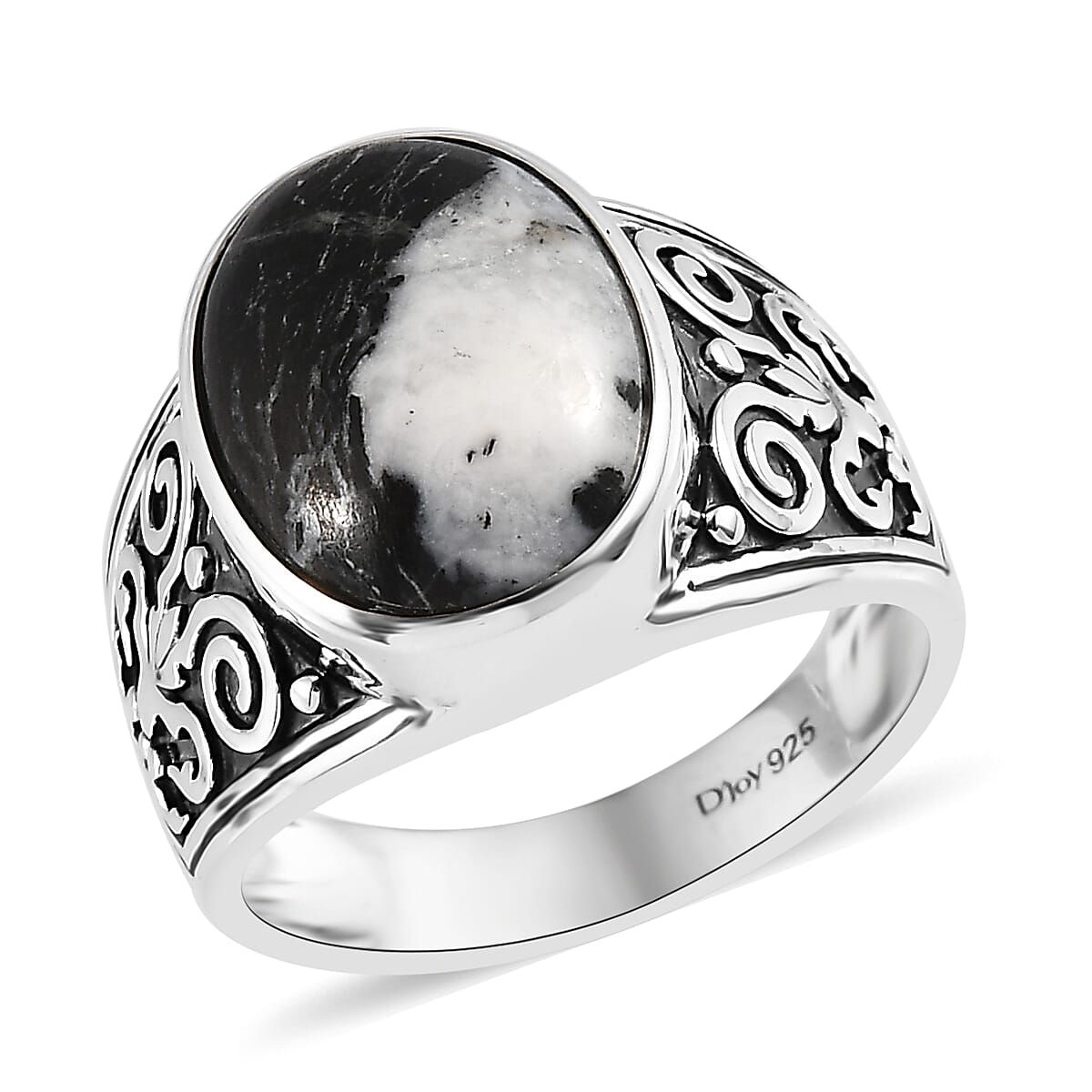 Unleash your style with our innovative artisan crafted white buffalo solitaire men's ring. This exceptional piece showcases the rare and stunning white buffalo stone, with its captivating marbled pattern. Crafted with fine sterling silver and a bezel setting, this solitaire ring features an oval-shaped gemstone. The broad shank with smooth metal scrollwork adds a touch of elegance to this wearable art. Elevate your look with this exquisite and timeless masterpiece of artisan craftsmanship.