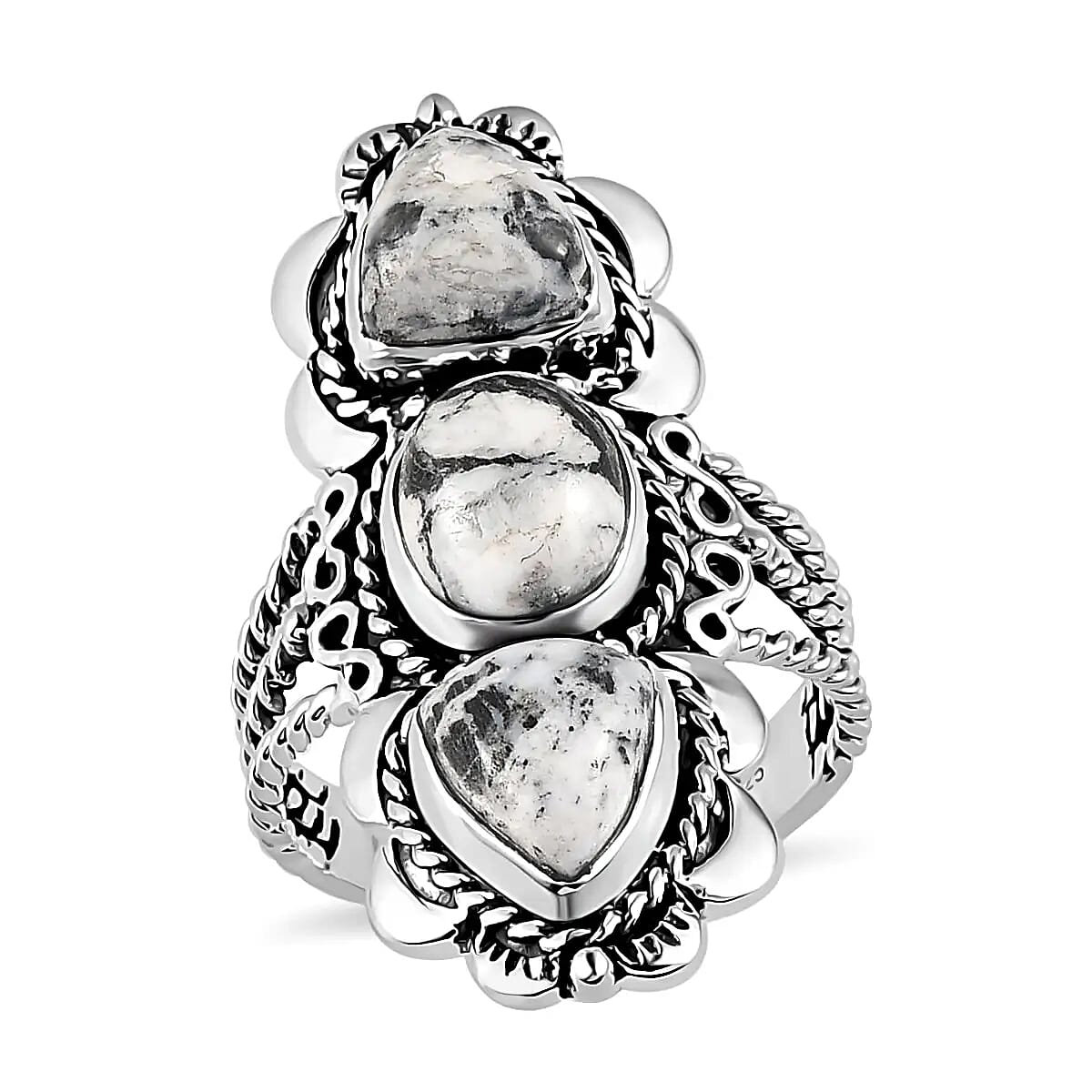 Artisan Crafted White Buffalo Ring, 3 Stone Moon Ring, 3 Stone Ring, Trilogy Ring, Sterling Silver Ring, Elongated Ring 6.90 ctw