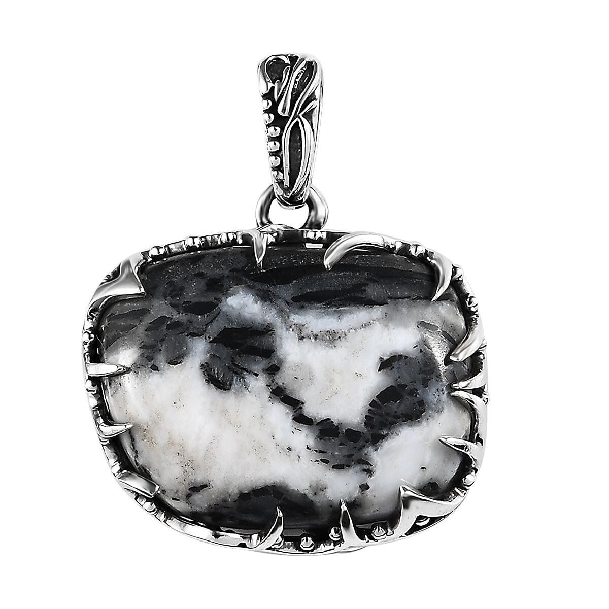 Artisan Crafted White Buffalo Solitaire Pendant in Black Oxidized Sterling Silver 18.85 ctw