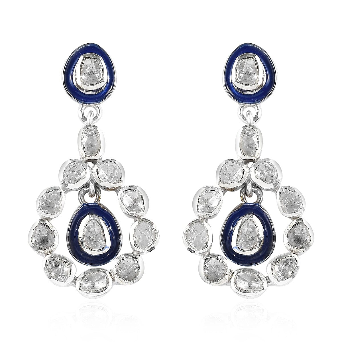 Artistry Polki Collection Polki Diamond & Enameled Earrings in Platinum Over Sterling Silver 1.50 ctw