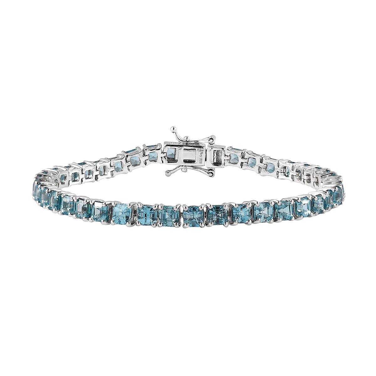 Asscher Cut Cambodian Blue Zircon Tennis Bracelet in Platinum Over Sterling Silver (7.25 In) 21.35 ctw