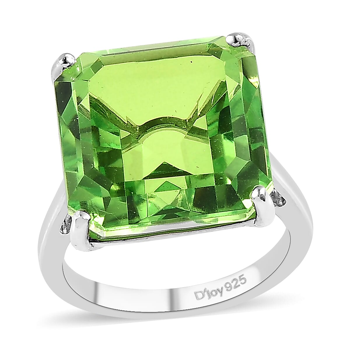Asscher Cut Chartreuse Quartz (Triplet) Solitaire Ring in Platinum Over Sterling Silver 12.85 ctw