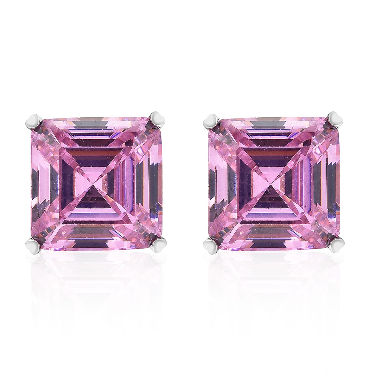 Asscher Cut Finest Pink and White CZ Stud Earrings in Sterling Silver 8.25 ctw