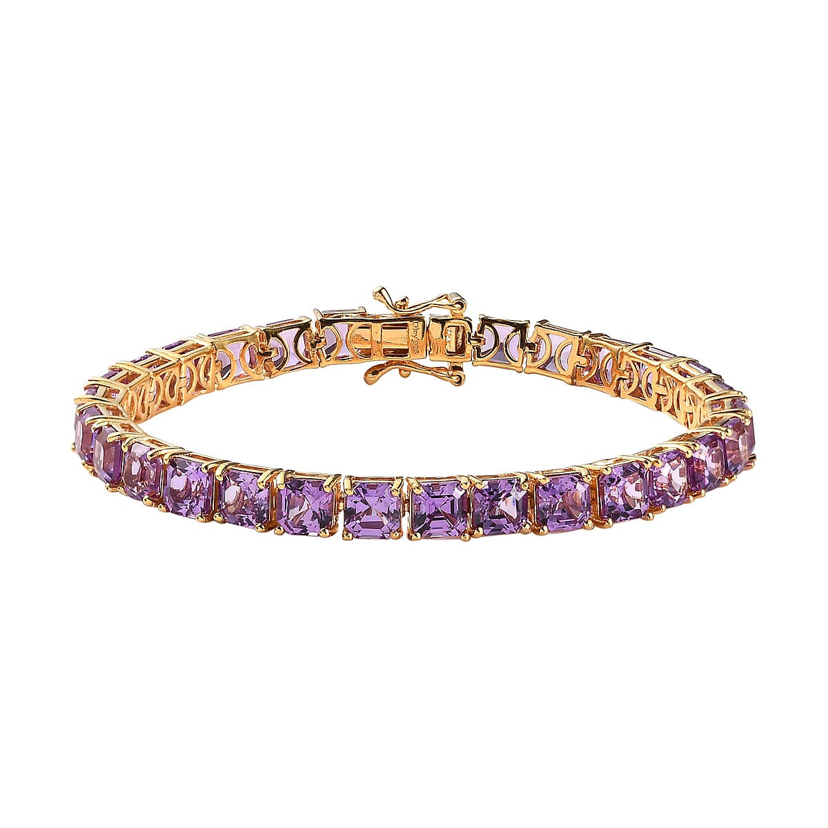 Asscher Cut Lab Grown Color Change Sapphire Tennis Bracelet in Vermeil Yellow Gold Over Sterling Silver (8.00 In) 31.50 ctw