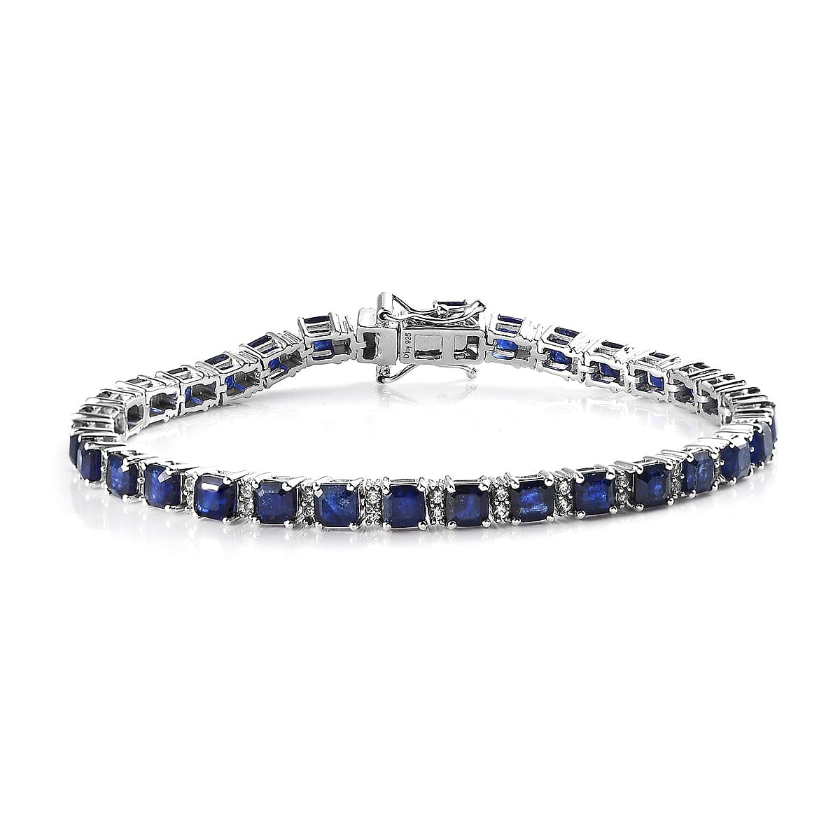 Asscher Cut Masoala Sapphire (D) and White Zircon Bracelet in Platinum Over Sterling Silver (7.25 In) 17.40 ctw