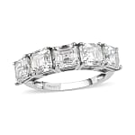 Command the room with this moissanite ring for women that speaks volumes of your individuality and elegance. The Asscher cut moissanite five stone ring, cast in a luminous finish over sterling silver, is a testament to your timeless beauty. Drench yourself in the luxurious sparkle of moissanite and make every moment count.