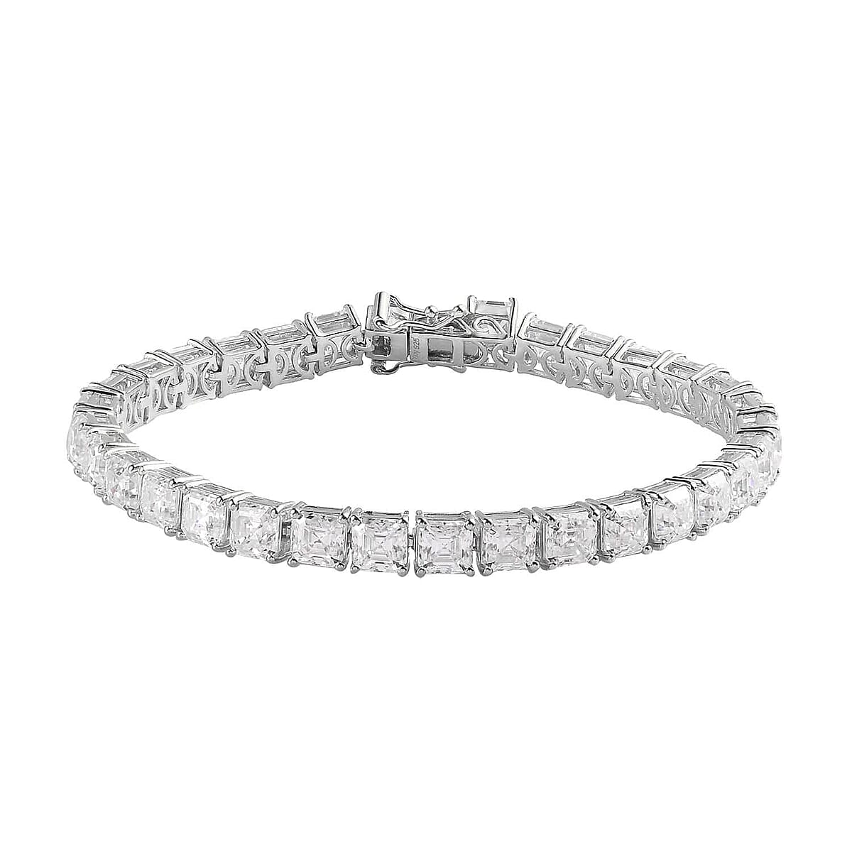 Asscher Cut Moissanite 5mm Tennis Bracelet in Platinum Over Sterling Silver (7.25 In) 22.15 ctw