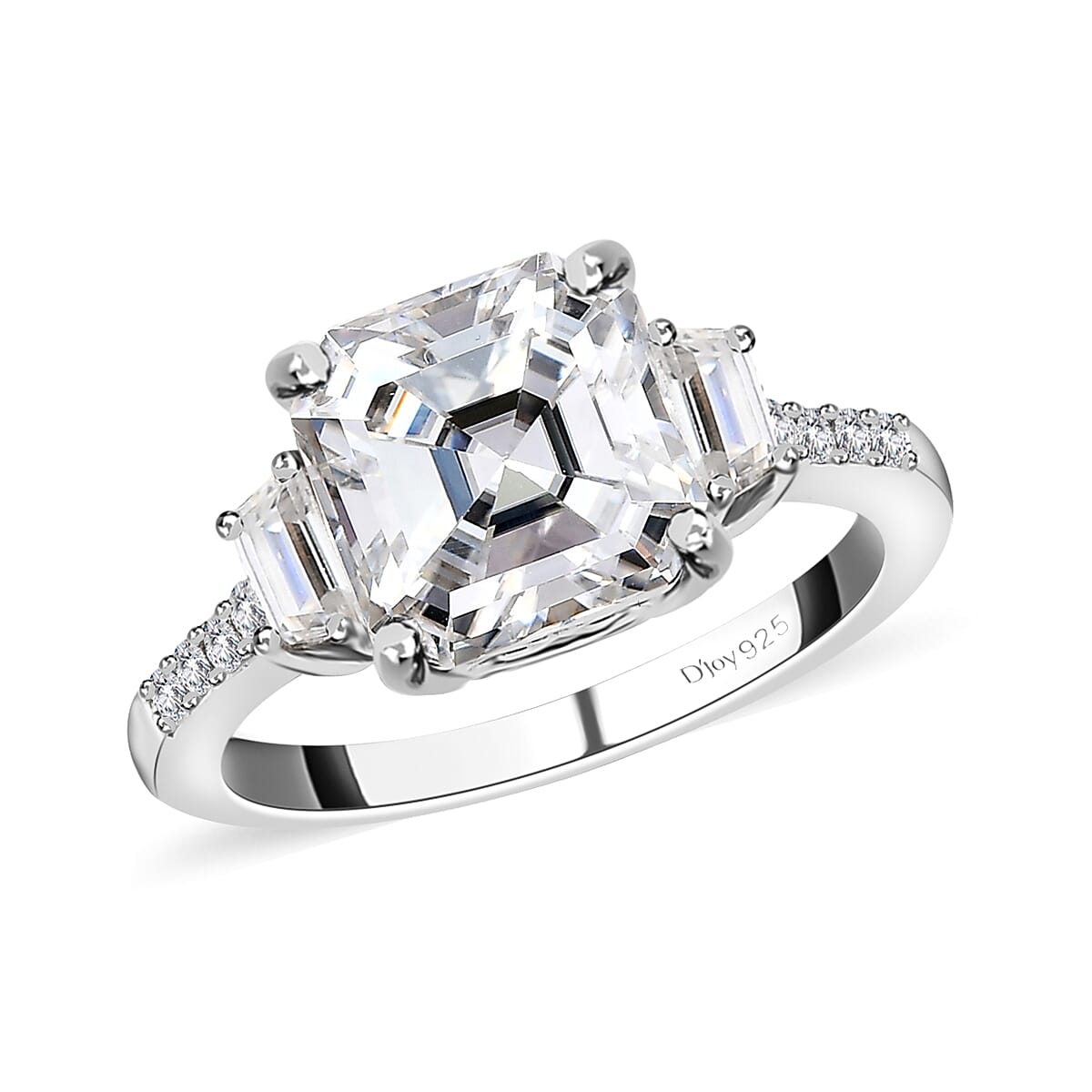 Asscher Cut Moissanite Ring in Platinum Over Sterling Silver (Size 8.0) 3.00 ctw