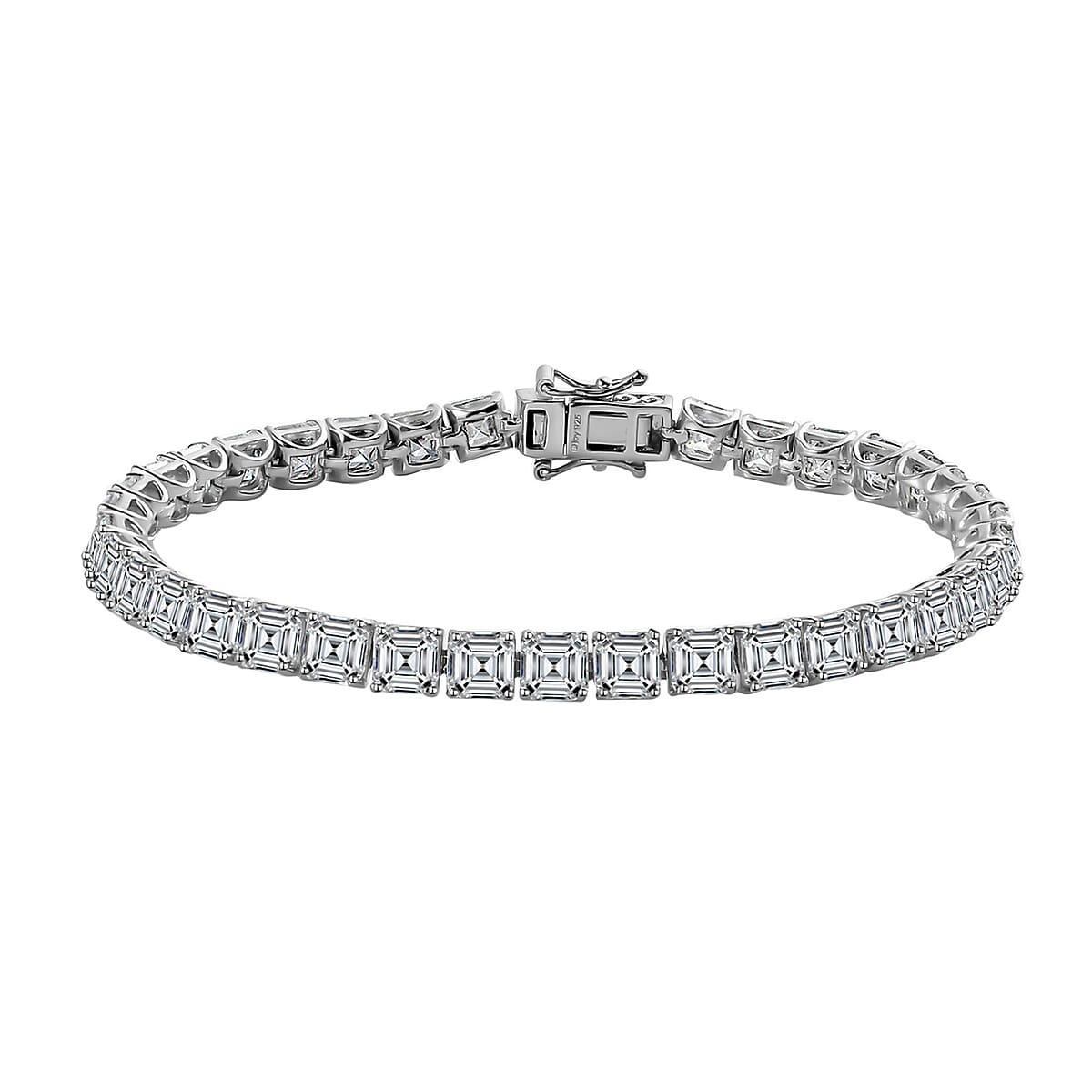 Asscher Cut Moissanite Tennis Bracelet in Platinum Over Sterling Silver (8.00 In) 24.40 ctw