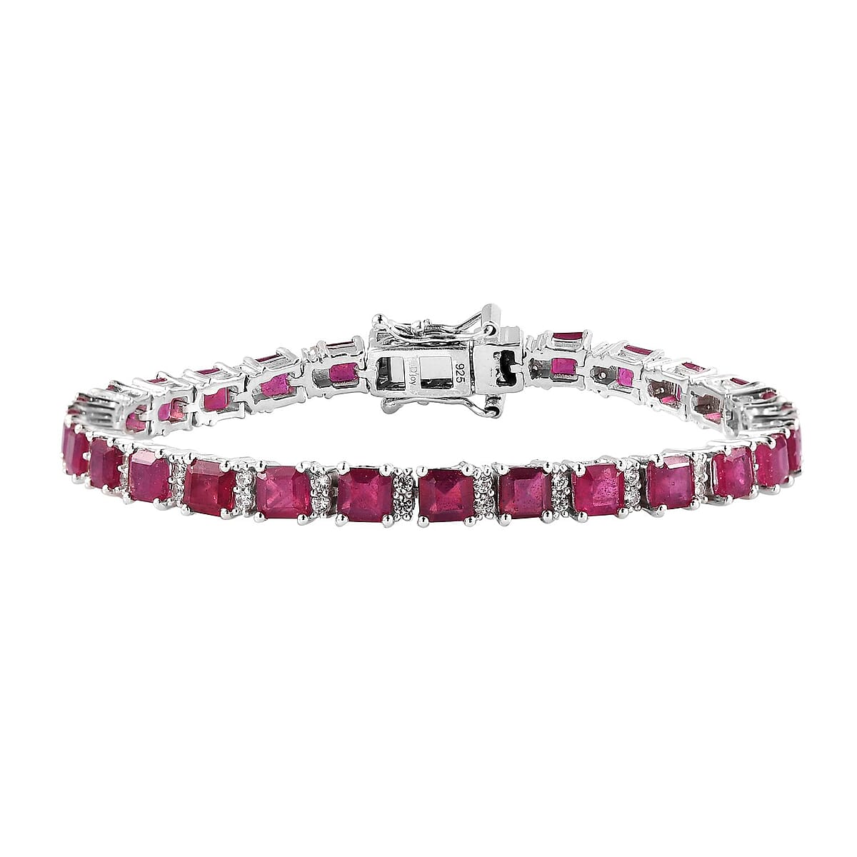Asscher Cut Niassa Ruby (FF) and White Zircon Bracelet in Platinum Over Sterling Silver (6.50 In) 14.85 ctw