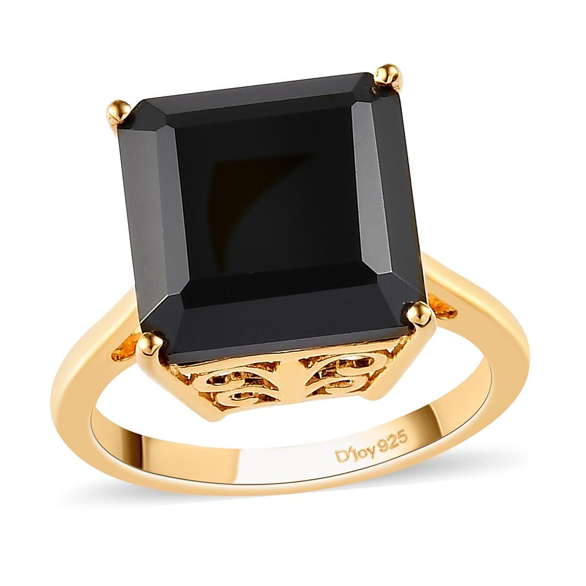 Asscher Cut Thai Black Spinel Solitaire Ring in Vermeil Yellow Gold Over Sterling Silver (Size 8.0) 11.00 ctw