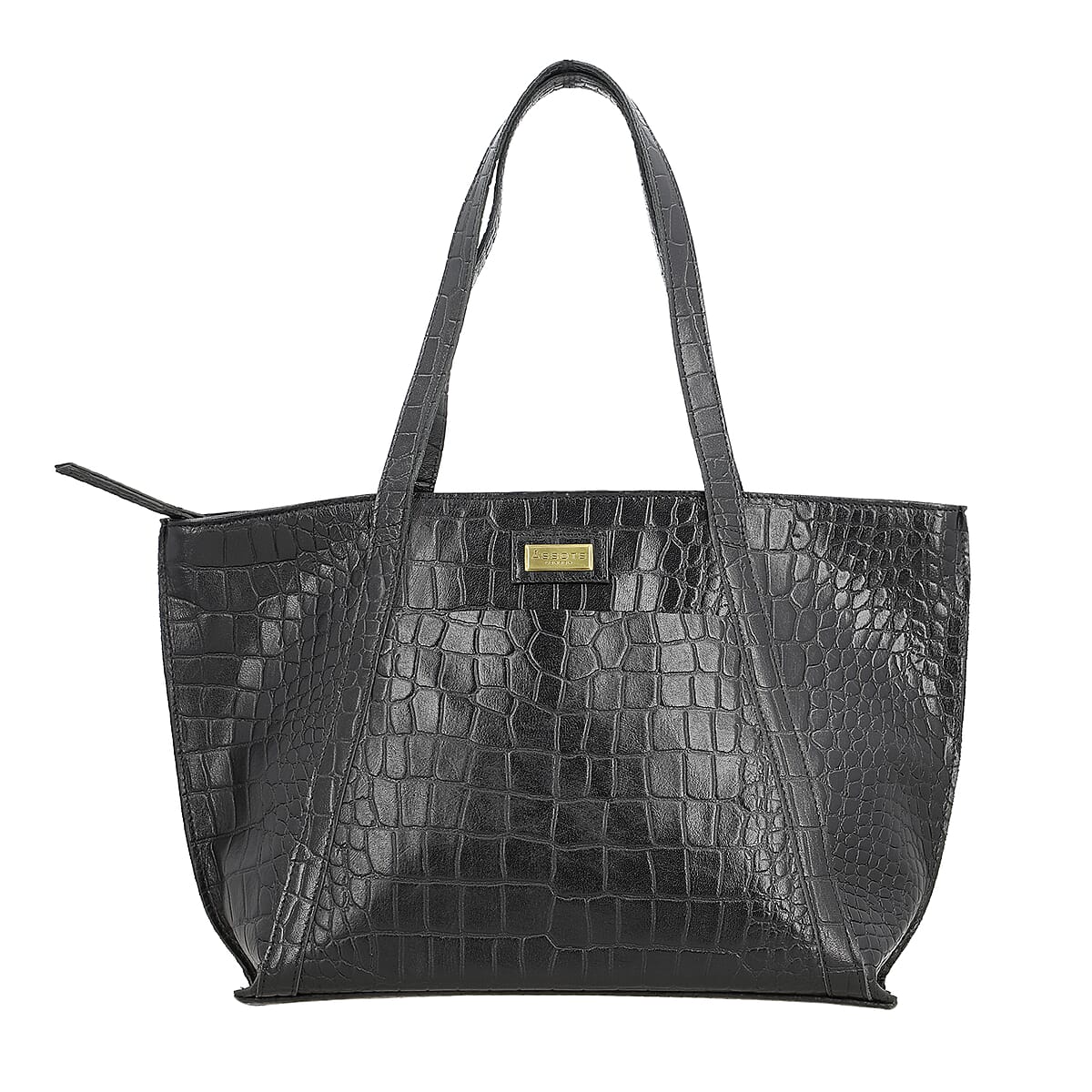 Assots London Black Genuine Leather Croco Embossed Tote Bag