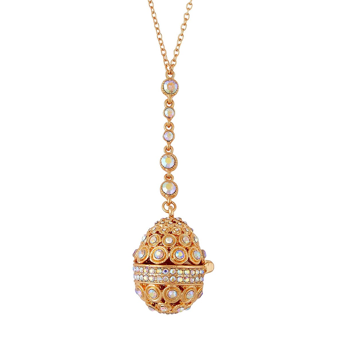 Aurora Borealis Austrian Crystal Easter Egg Necklace 23.5 Inches in Goldtone