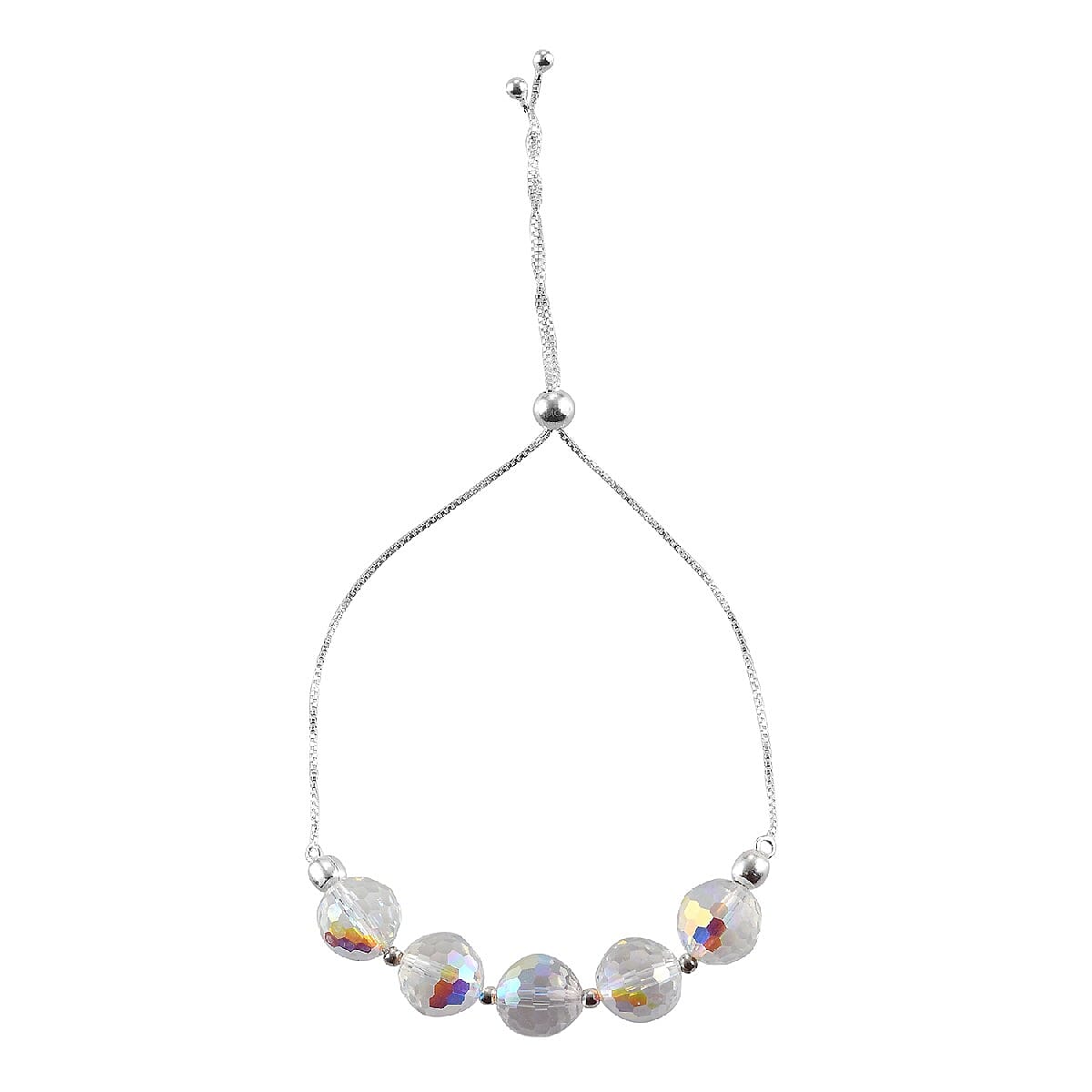 Aurora Borealis Crystal Bolo Bracelet in Sterling Silver