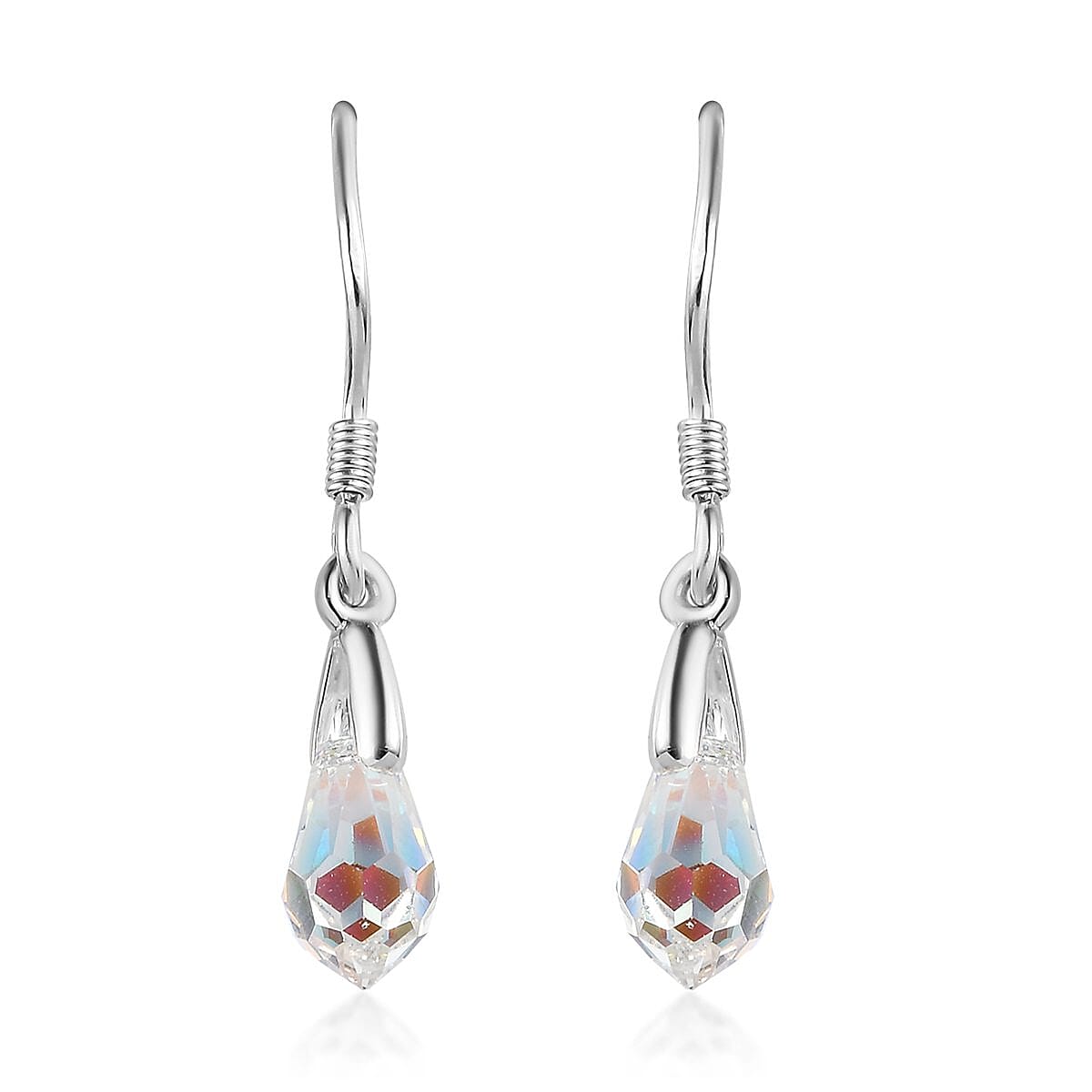Aurora Borealis Crystal Drop Earrings in Sterling Silver