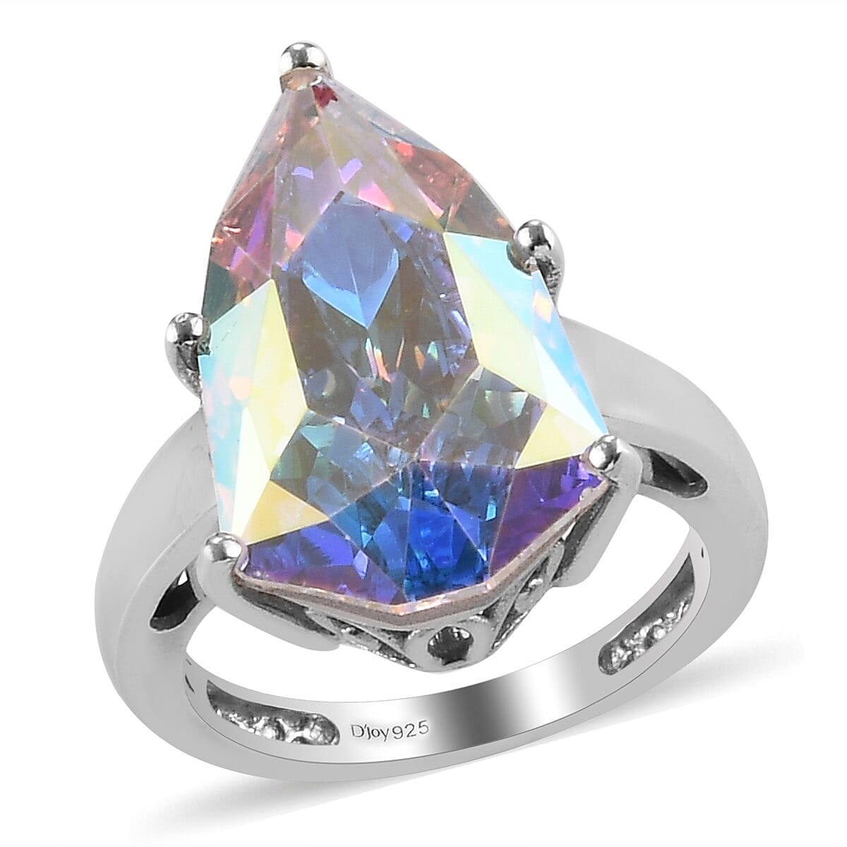 Aurora Borealis Crystal Solitaire Ring in Platinum Over Sterling Silver (Size 10.0)