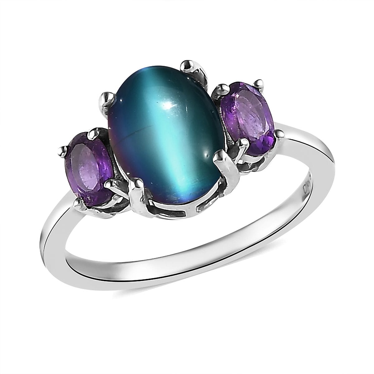 Aurora Moonstone (D) and Lusaka Amethyst 3 Stone Ring in Platinum Over Sterling Silver (Size 8.0) 2.50 ctw