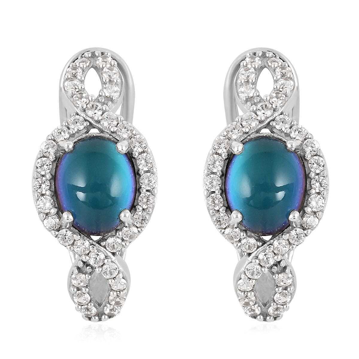 Aurora Moonstone (D) and White Zircon Omega Clip Earrings in Platinum Over Sterling Silver 5.50 ctw