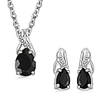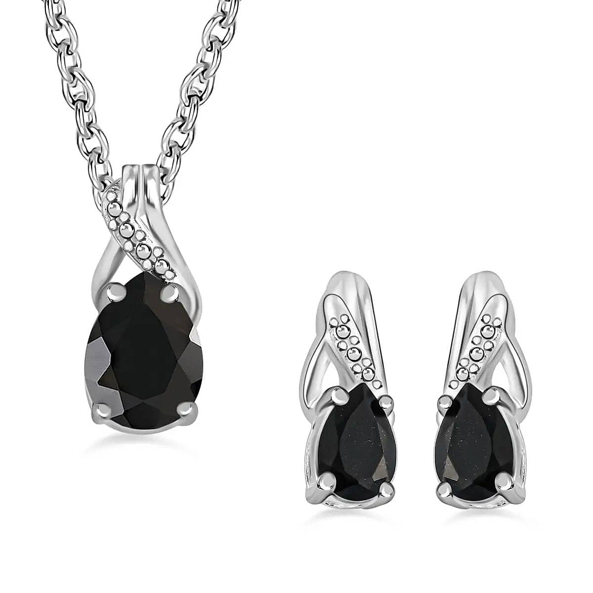 Australian Black Tourmaline 1.85 ctw Earrings and Pendant Necklace Jewelry Set, Sterling Silver and Stainless Steel Jewelry Set, Set of Tourmaline Earrings and Tourmaline Pendant Necklace