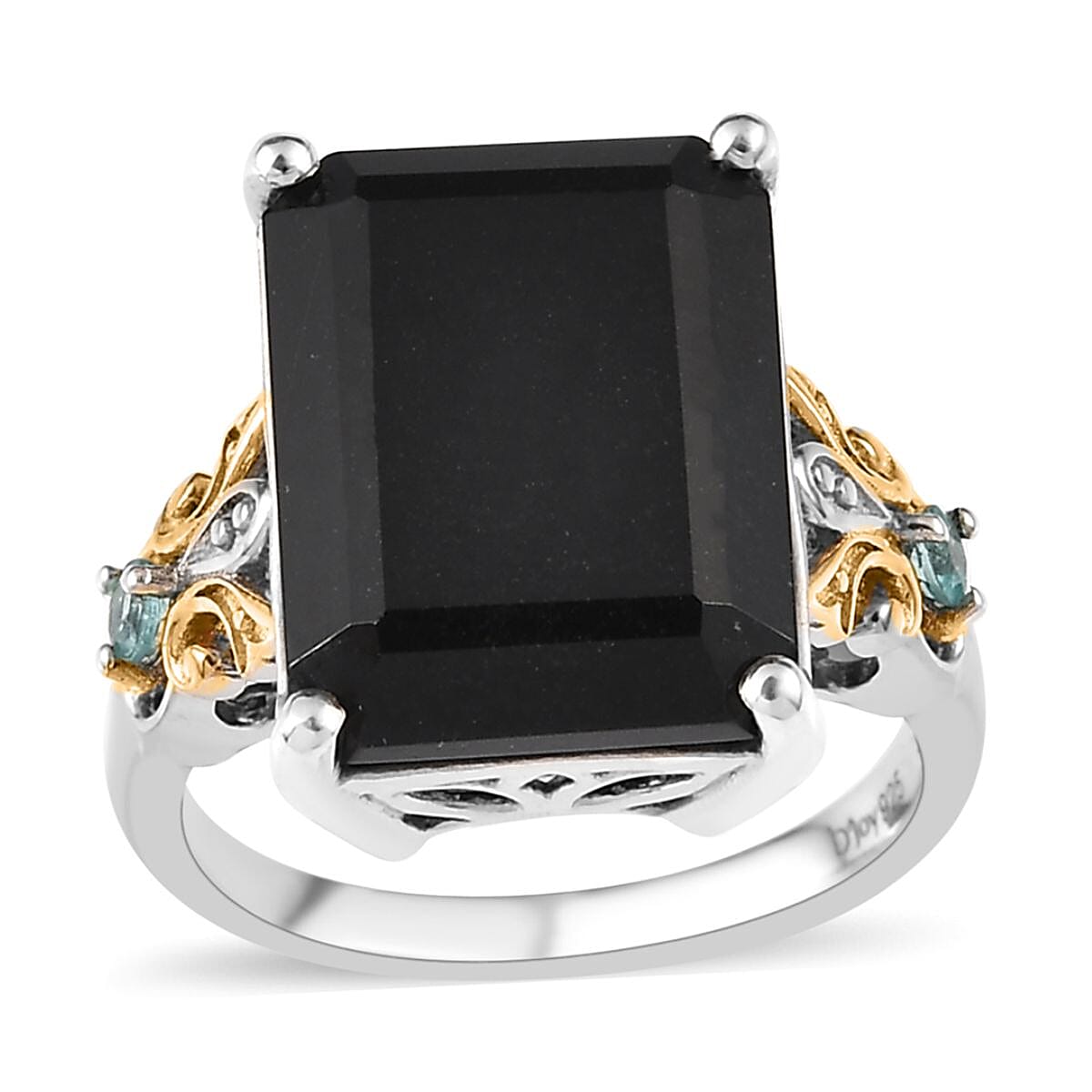 Australian Black Tourmaline and Madagascar Paraiba Apatite Ring in Vermeil YG and Platinum Over Sterling Silver 13.60 ctw