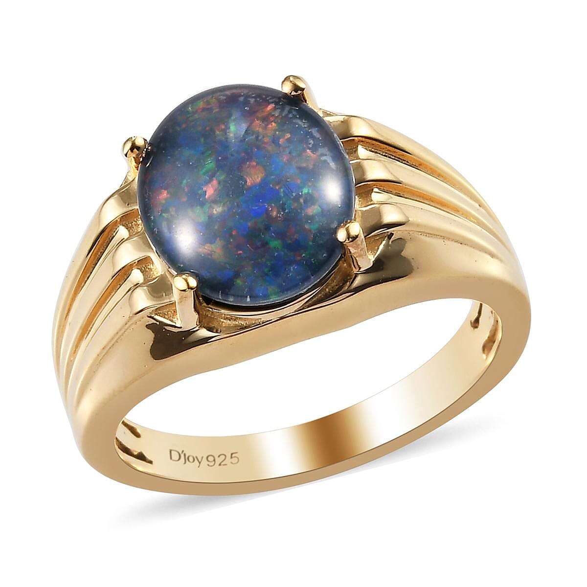 Australian Boulder Opal Triplet Men's Ring in Vermeil Yellow Gold Over Sterling Silver 2.85 ctw