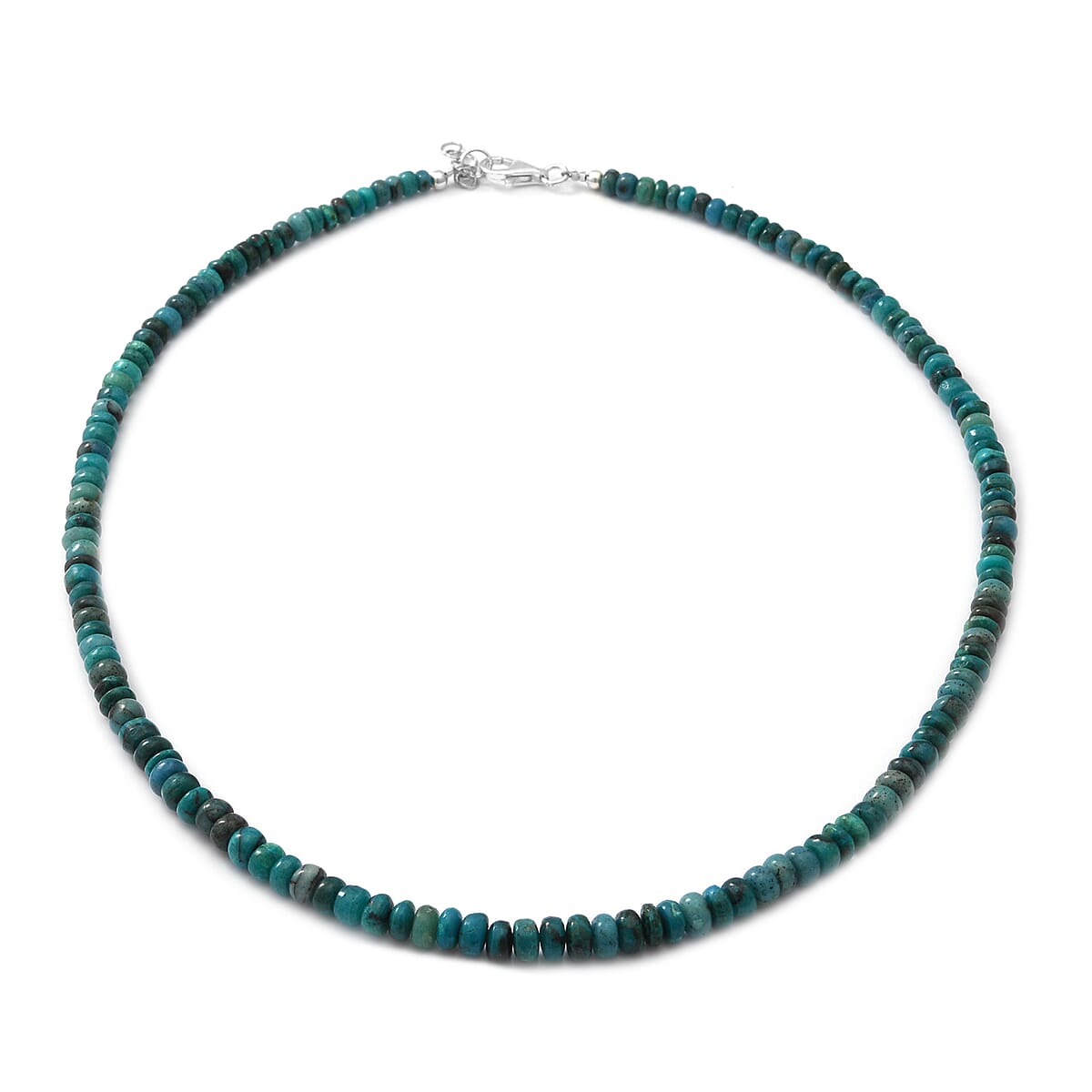 Australian Chrysocolla 4-6mm Beaded Necklace 18 Inches in Sterling Silver 90.00 ctw