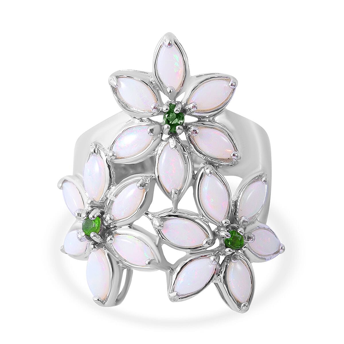 Australian White Opal and Natural Chrome Diopside Floral Ring in Platinum Over Sterling Silver 1.50 ctw