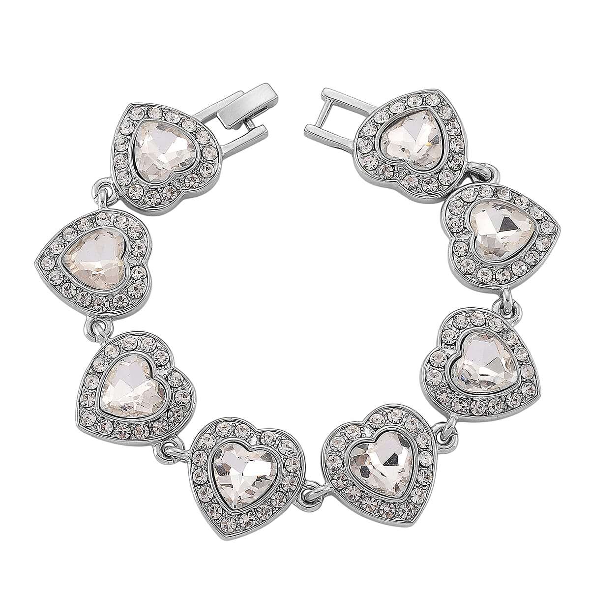 Austrian Crystal and White Glass Heart Link Bracelet in Silvertone (7.75 In)