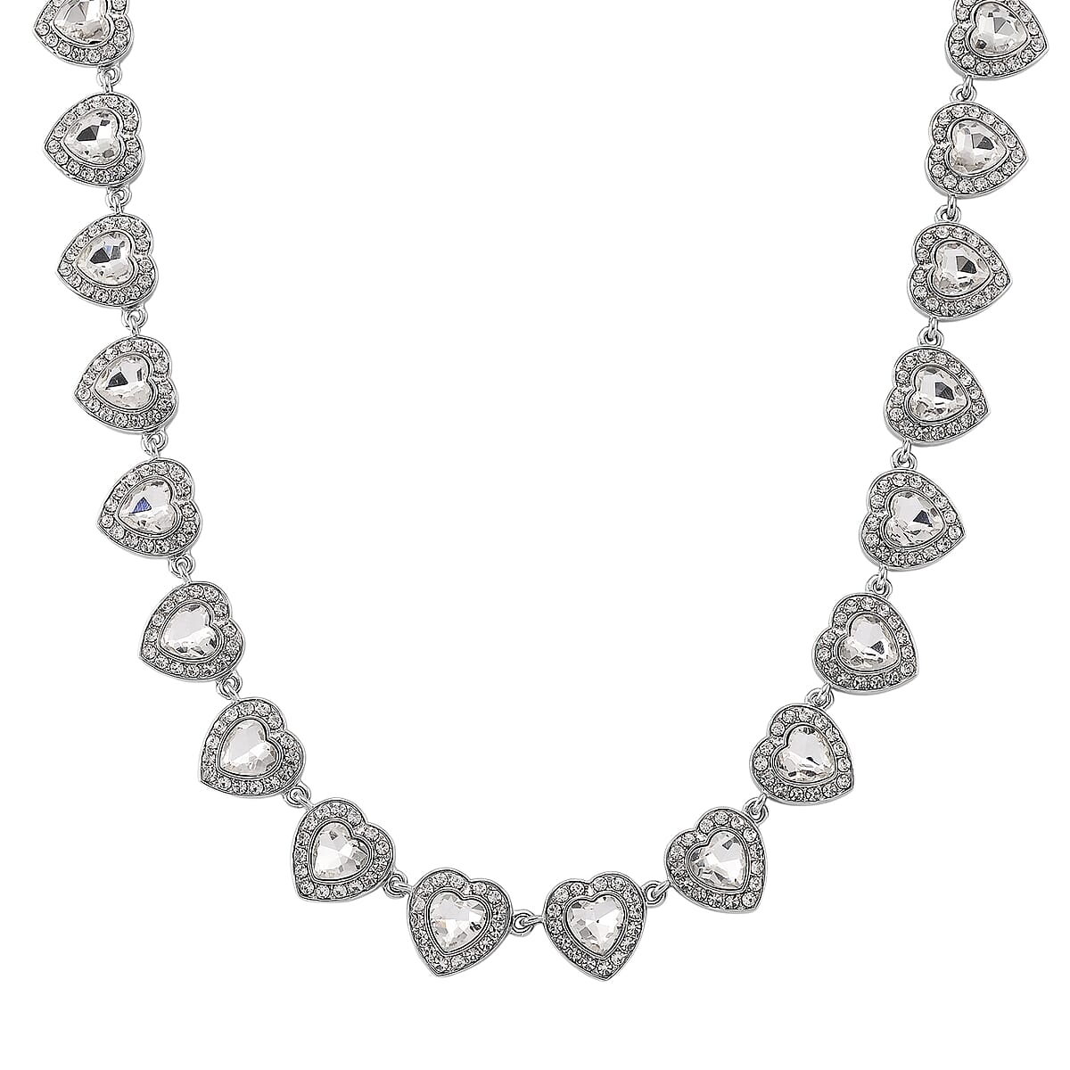 Austrian Crystal and White Glass Heart Link Necklace (20 Inches) in Silvertone