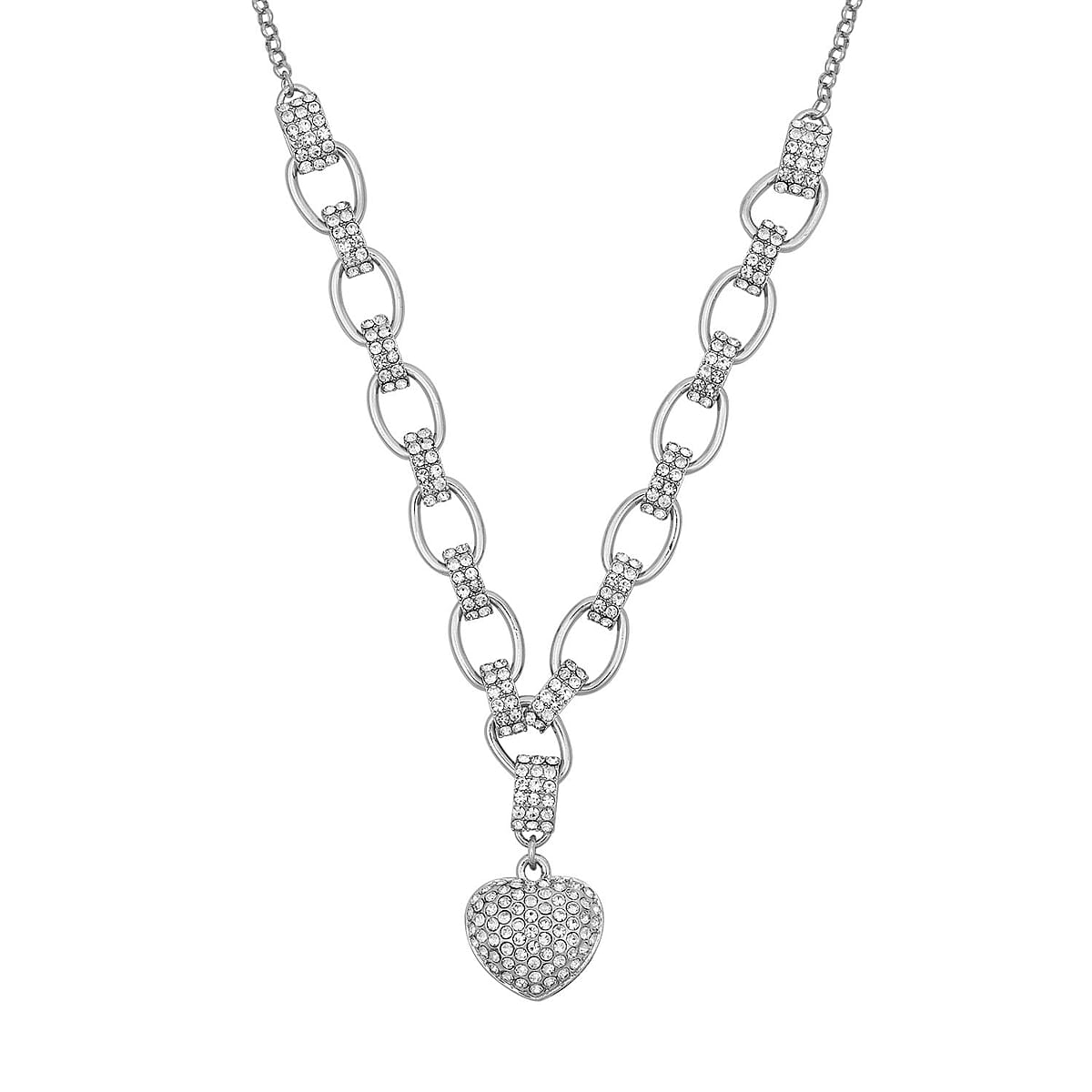 Inspired by the romantic heart motif, this fabulously designed Austrian crystal heart necklace symbolizes a strong bond between people, romantic love and affection. Enjoy glittery crystals and skilled artistry with this beautiful heart necklace. This heart necklace is inspired by the immaculate idea of self-love, reminiscent of the tranquil waters allowing you to heal and feel bliss. The heart symbol has become a very popular design for jewelry and is a great gift to give when you want to express love. Fashioned in plated brass, this heart necklace features 20 inches of matinee length.