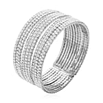 Austrian Crystal Layered Look Cuff Bracelet in Silvertone (6.50-7In)