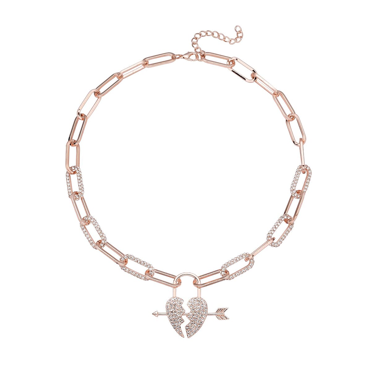 Austrian Crystal Paper Clip Chain Heart Necklace 20-22 Inches in Rosetone