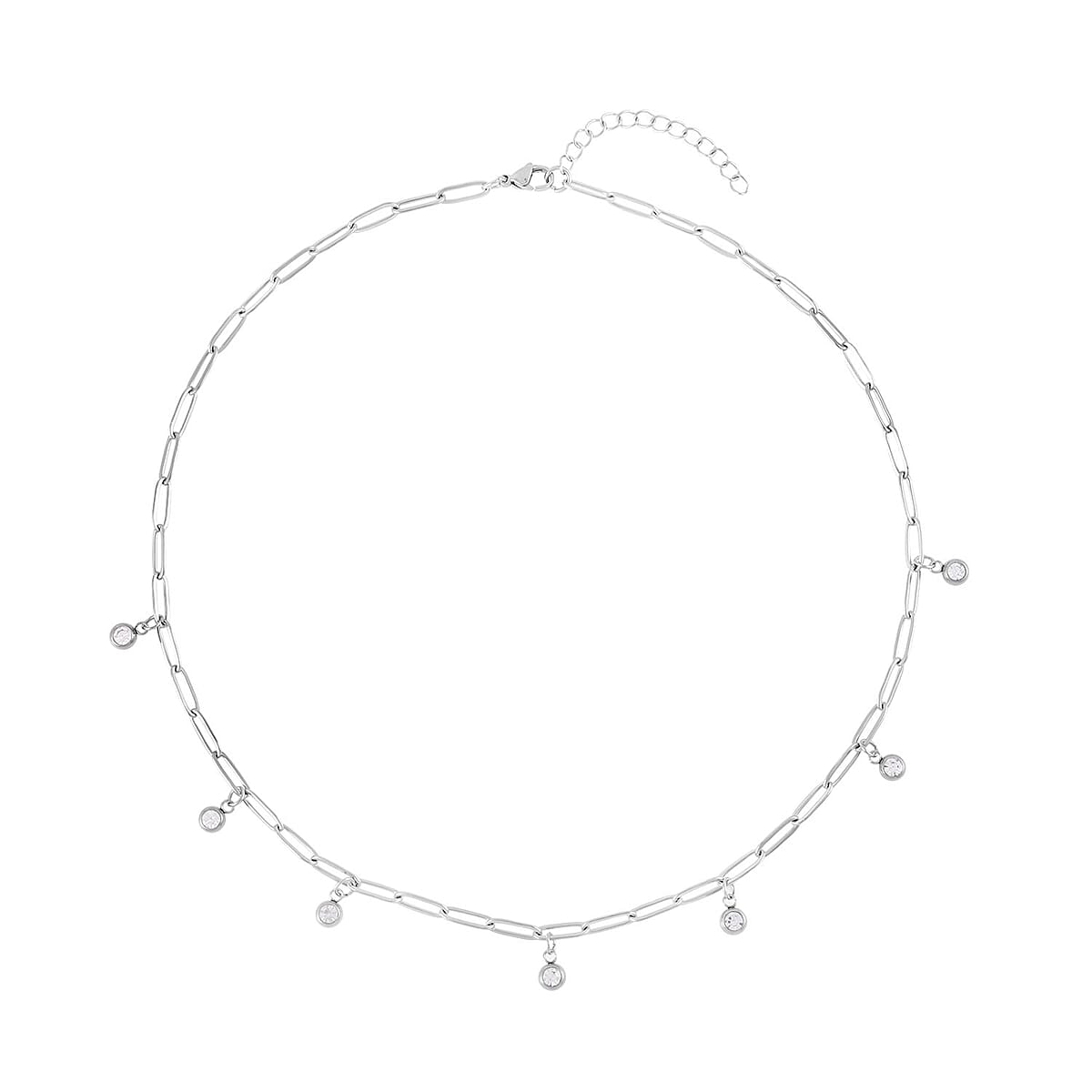 Austrian Crystal Paper Clip Chain Station Necklace (20-22 Inches) in Stainless Steel , Tarnish-Free, Waterproof, Sweat Proof Jewelry