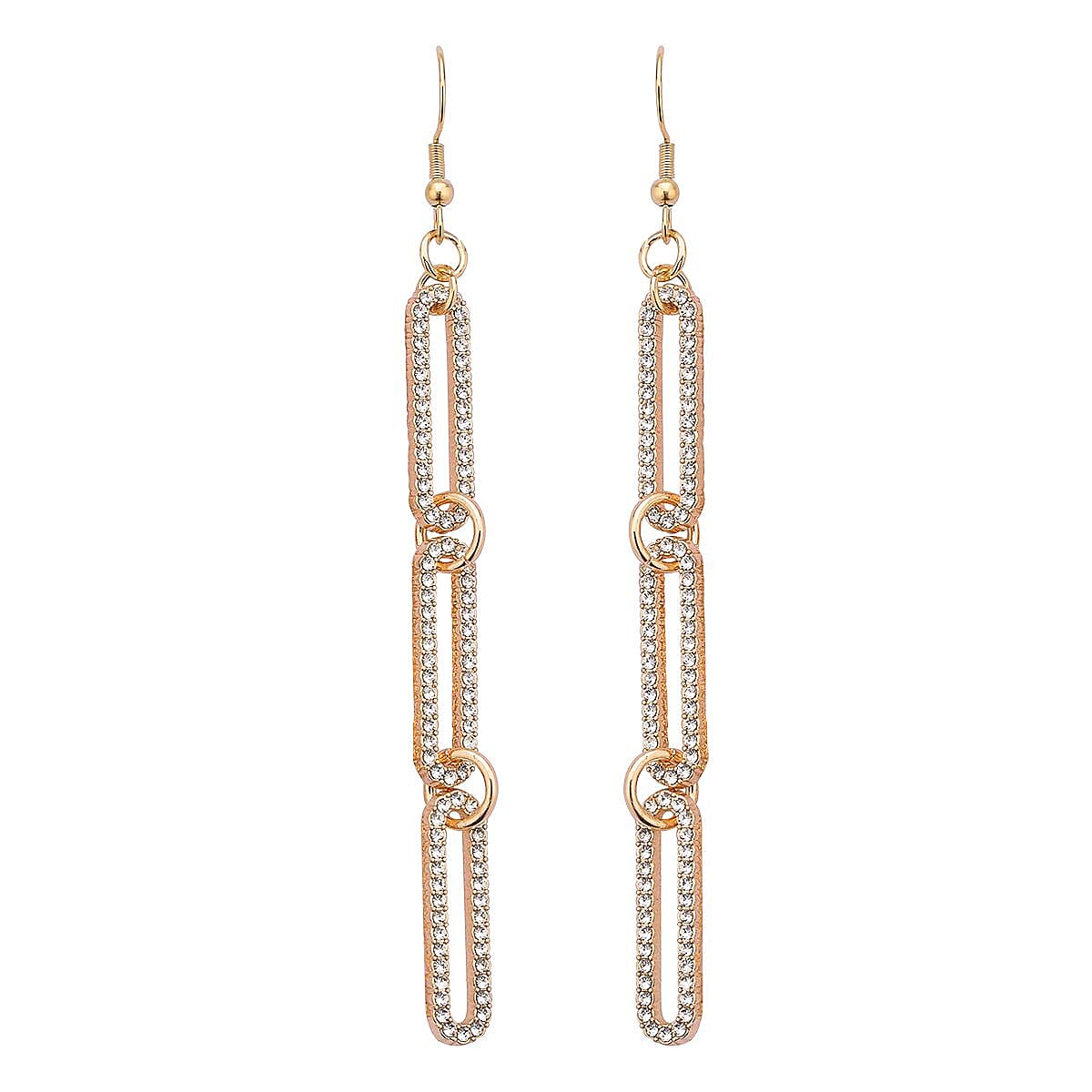 Austrian Crystal Paper Clip Earrings in Goldtone
