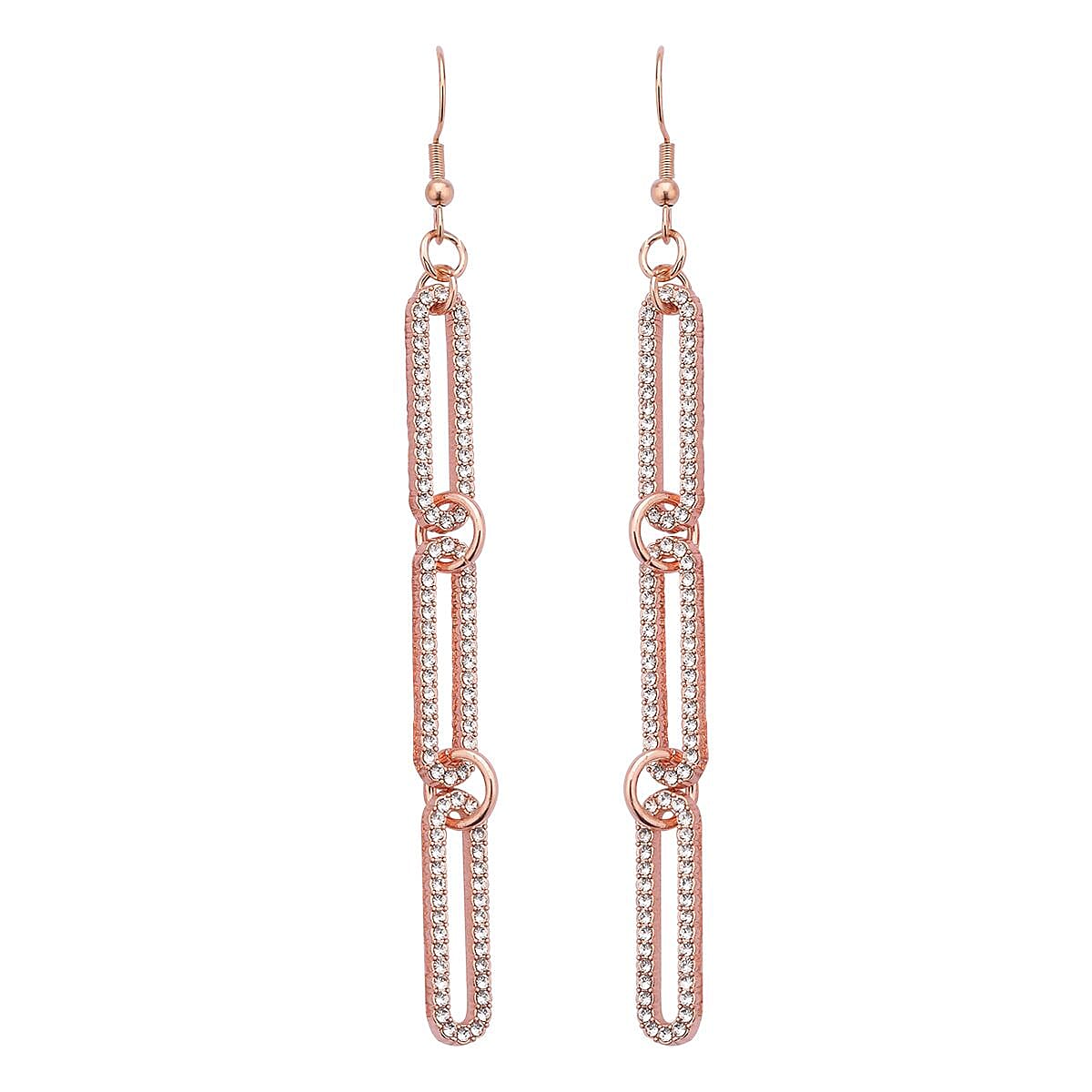 The Austrian crystal paper clip earrings are elegant accessories for women, symbolizing unity and togetherness. Featuring Austrian crystals, these earrings are known for their shine, durability, and affordability, making them a stylish choice for any occasion.
