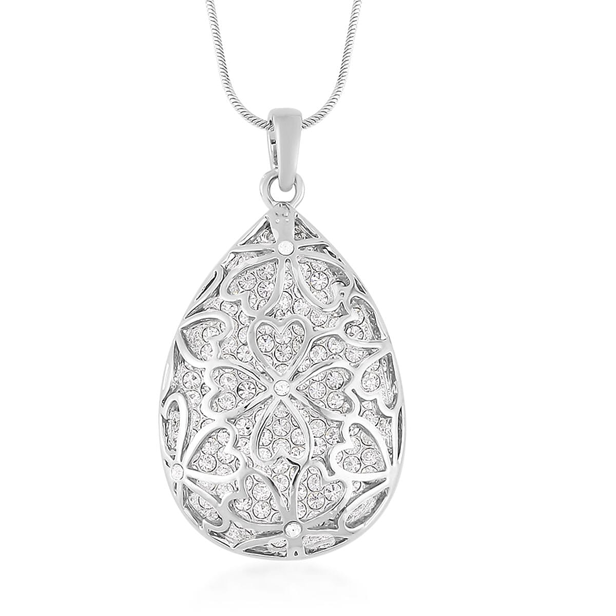 Austrian Crystal Pear Shaped Pendant Necklace 20-30 Inches in Silvertone