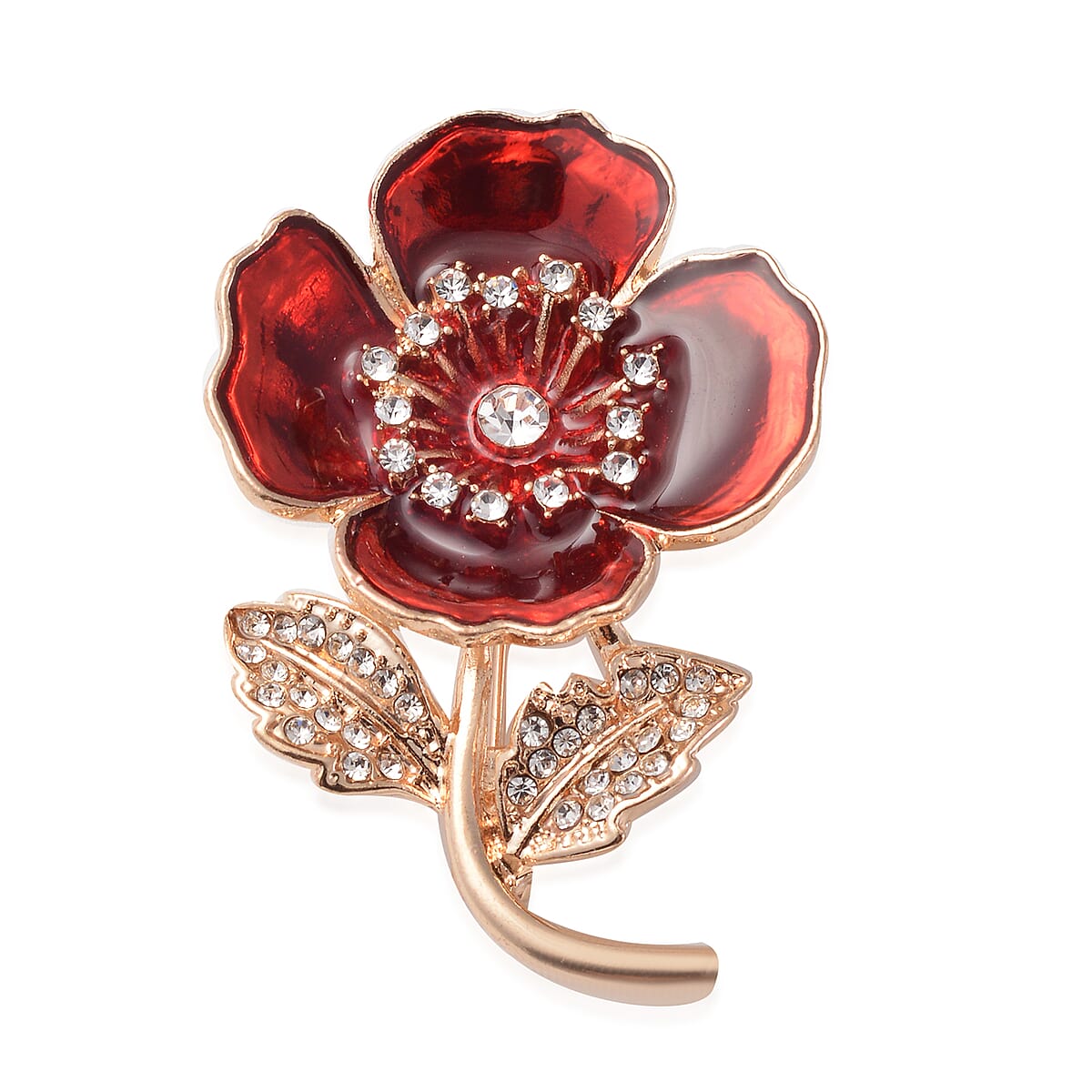 Austrian Crystal Poppy Flower Brooch in Goldtone, Jewelry Gift For Women, Floral Fashion Pin