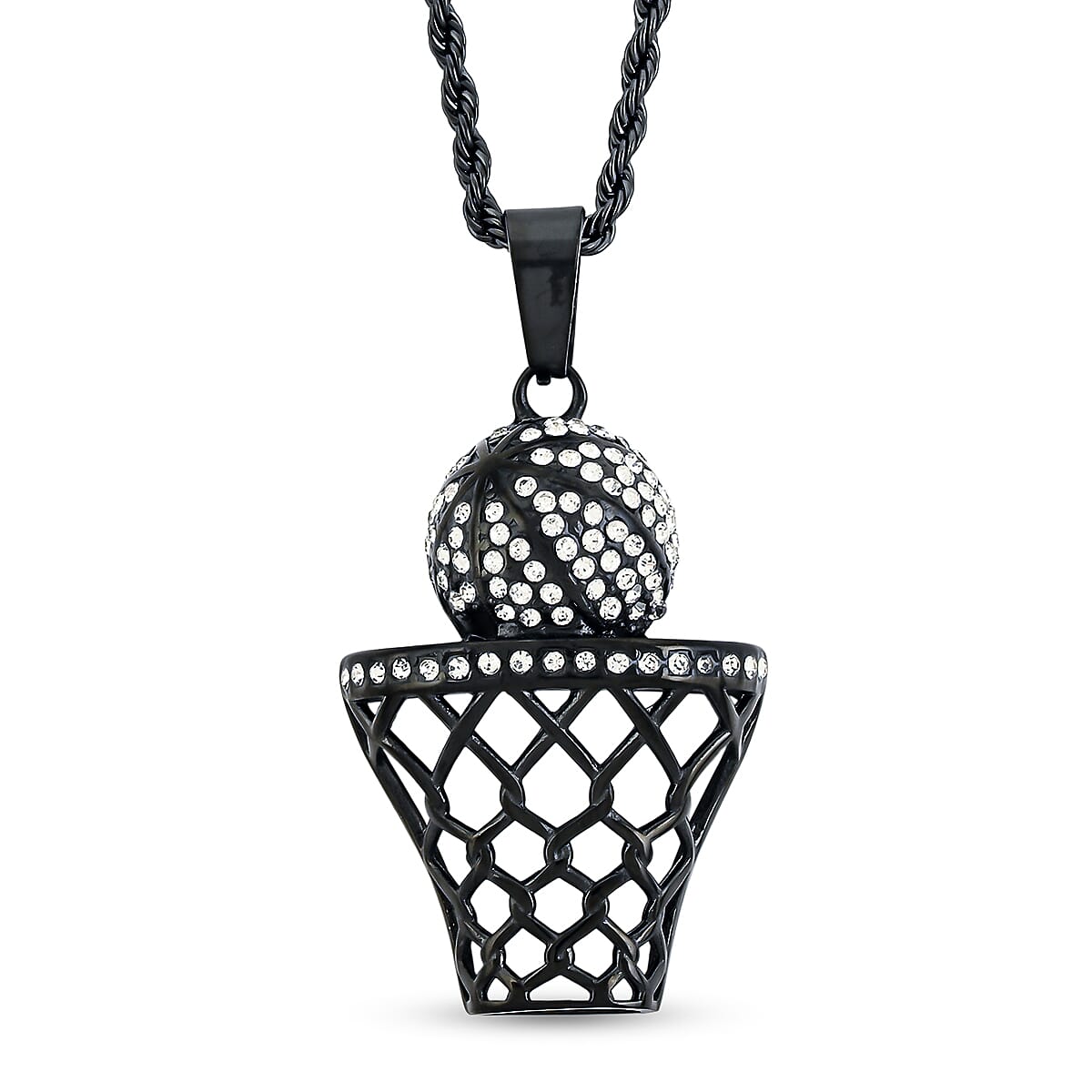 Austrian Crystal Slam Dunk Basketball Pendant Necklace (22 Inches) in ION Plated Black Stainless Steel