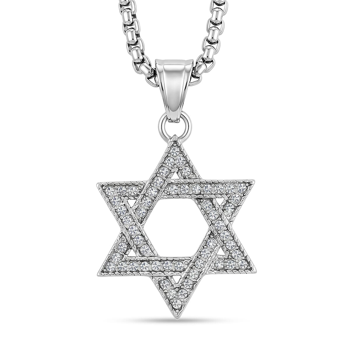 Austrian Crystal Studded Star of David Pendant Necklace (22 Inches) in Stainless Steel