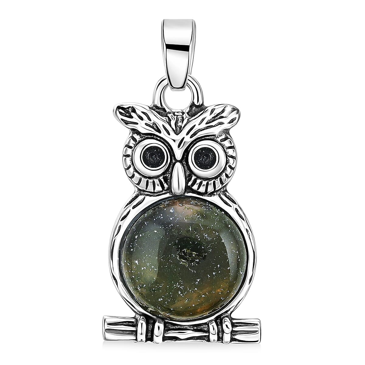 Aventurine Small Owl Pendant in Silvertone with Stainless Steel Necklace (20 Inches) 8.00 ctw