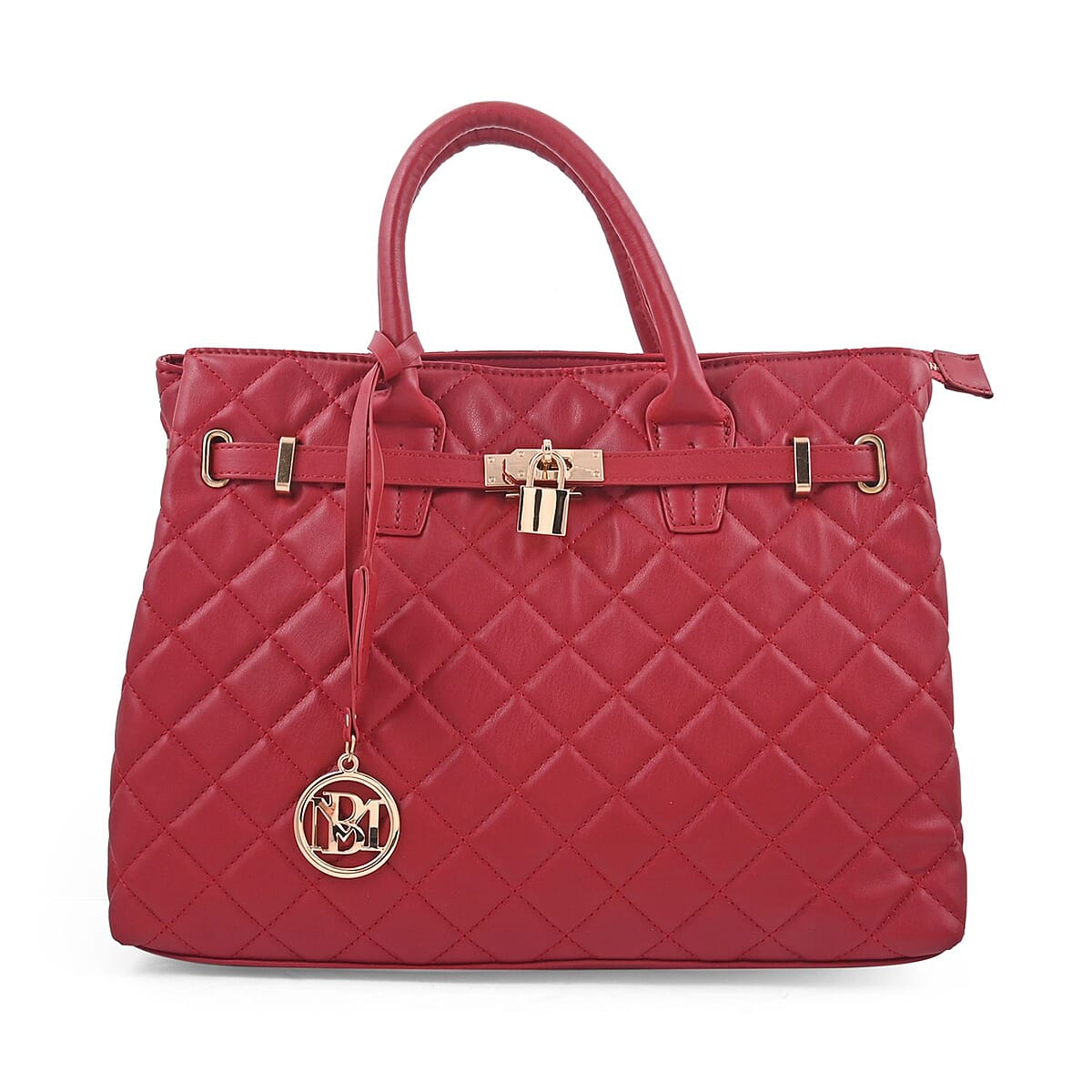 Badgley Mischka Brick Red Vegan Leather Quilted Shoulder Bag