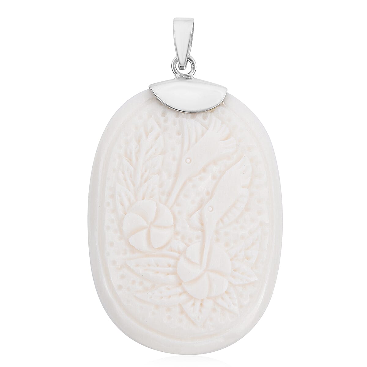 Bali Goddess Carved Bone Birds & Flower Pendant in Sterling Silver