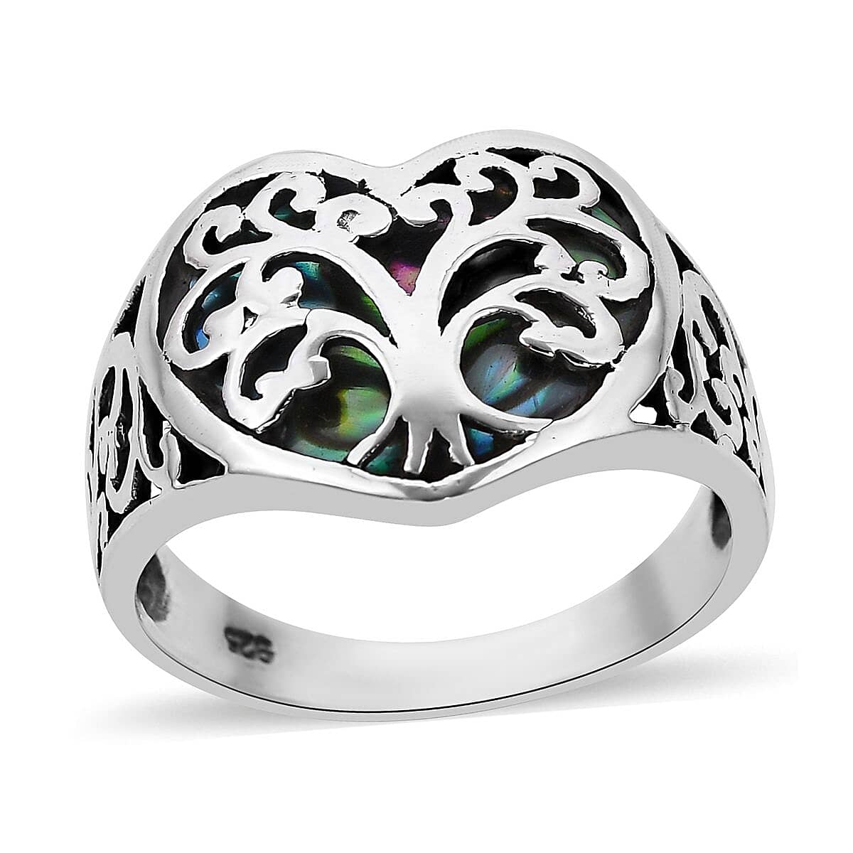 Bali Legacy Abalone Shell Floral Tree of Life Heart Ring in Sterling Silver (Size 7.0)